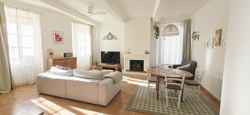 Cette imposante maison de village dispose de grands volumes et de belles hauteurs sous plafonds. Une entrée avec cellier permet d'accéder soit au garage de 85 m², à la cave et à la buanderie, soit de monter au 1er niveau. Salon-salle à manger avec insert à pellets installé dans la cheminée, cuisine séparée, 2 chambres, une salle de bain avec baignoire et un wc indépendant compose ce premier espace. Au second, il y a une très grande pièce à vivre, donnant sur un séchoir provençal. La pièce est climatisée, avec parquet bois, poutres apparentes, et dispose d'une cuisine ouverte. Il y a également 2 chambres et une salle d'eau, un wc indépendant. Profiter de ce lieu très confortable, lumineux et sans travaux : toiture refaite, double vitrage partout, raccordée au tout à l'égout. Une maison facile à vivre aussi bien en tant que résidence principale que pour les vacances. A voir rapidement...