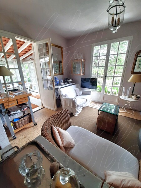 Vous tomberez sous le charme de cette coquette petite maison de vacances ! Sur un terrain clos de 2 600 m², la maison comprend une belle véranda, une pièce à vivre avec cuisine équipée et cheminée, deux chambres dont une avec salle d'eau attenant et wc. Petit cellier et garage indépendant aménagé en chambre d'amis avec salle d'eau et wc. Beau terrain joliment aménagé avec piscine, abris de jardin, oliviers et canal d'arrosage. Cette charmante maison est vendue meublée et équipée.