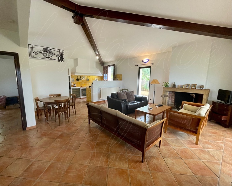 Sur un terrain plat de 667 m² avec une magnifique vue sur le village, nous vous proposons une maison de plain-pied de 100 m². Elle se compose d'un grand séjour/salle à manger de 40 m² avec cheminée. Cette très grande pièce de vie a un accès direct à une terrasse verdoyante de 50 m². La cuisine équipée est ouverte sur le séjour avec un cellier attenant pour le rangement. Il y a une première chambre avec sa salle d'eau et son WC indépendant. Dans l'autre partie de la maison se trouve une deuxième chambre avec salle d'eau/buanderie, un toilette et une pièce de rangement. Il est possible de créer un espace indépendant avec sa propre entrée. Places de parking. Coup de coeur assuré !