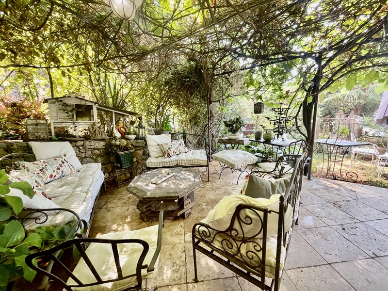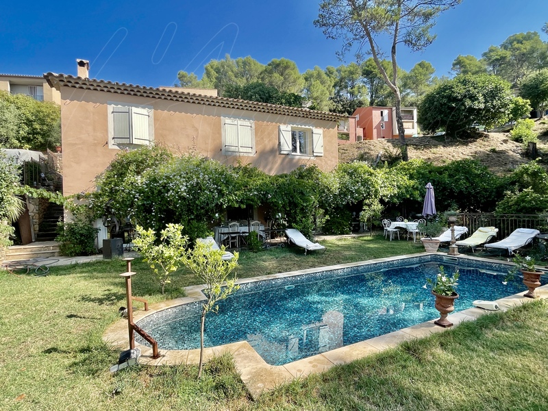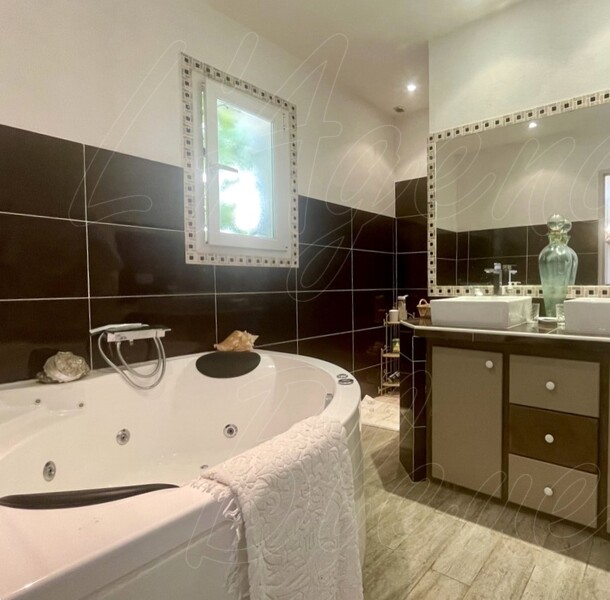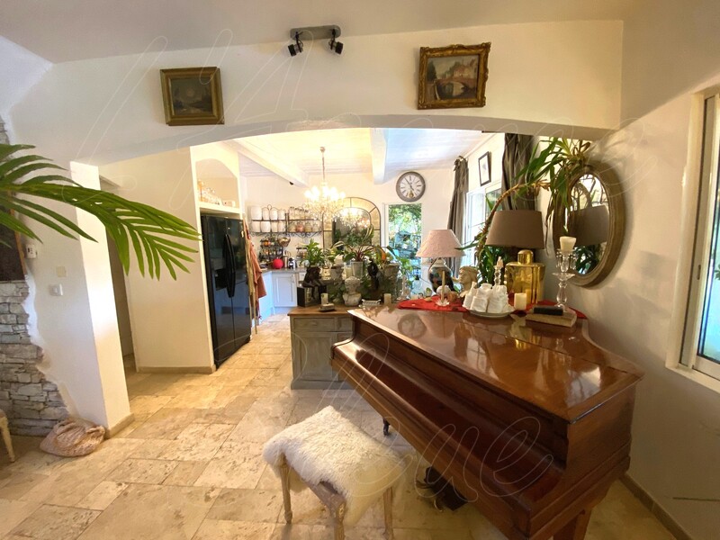 Maison sur 2 niveaux, plein sud, avec la nature et la vallée comme décor ! La piscine est entourée de statues et est en position centrale d'un jardin luxuriant. La maison se compose d'une belle pièce à vivre avec cheminée ouverte, cuisine équipée, wc indépendant et salle d'eau. Les baies à galandage (double vitrage partout et anti UV) permettent d'accéder facilement aux terrasses ombragées ou à la véranda. On accède au dessus par un bel escalier avec ferronnerie, et on découvre la partie nuit avec 3 chambres et un bureau, une salle de bain avec baignoire balnéo et grande douche, un wc indépendant. Il y a également une esplanade pour se garer, un garage, un atelier. Portail automatique, tout à l'égout, terrain clos et la vue est splendide !
