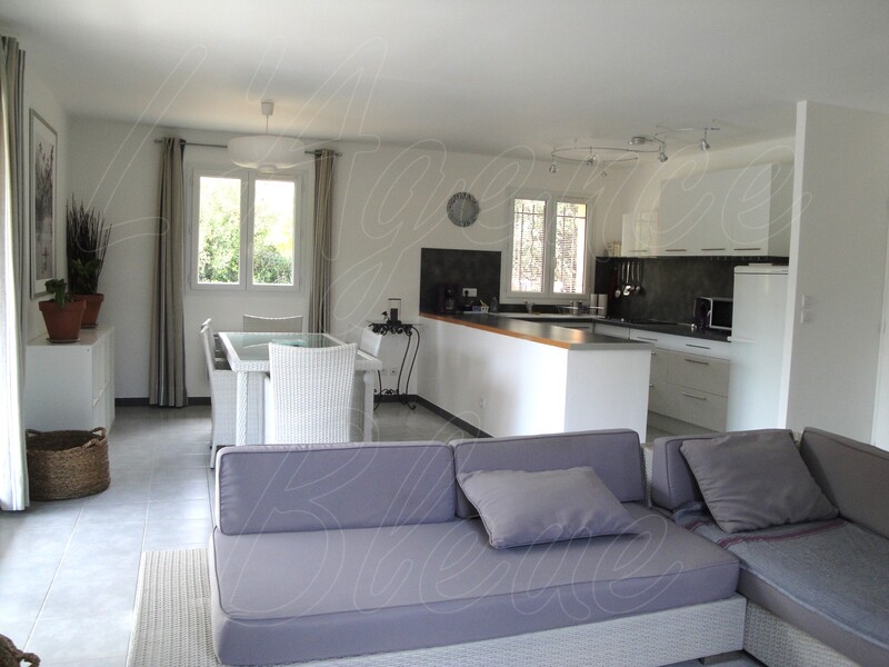 Maison de plain pied de 98 m2 sur un terrain clos et arboré de 853 m2, disposant d'un grand salon baigné de soleil, avec une cuisine ouverte, le tout s'ouvre sur la terrasse couverte et la piscine. La partie nuit se compose de 4 chambres, 2 salles de bains, 2 wc indépendants. Il y a également un garage pour un véhicule. La maison est sur vide sanitaire, combles isolés, chauffage électrique, double vitrage, tout à l'égout et eau de ville. Une villa prête à vous accueillir vous, ou vos futurs locataires...